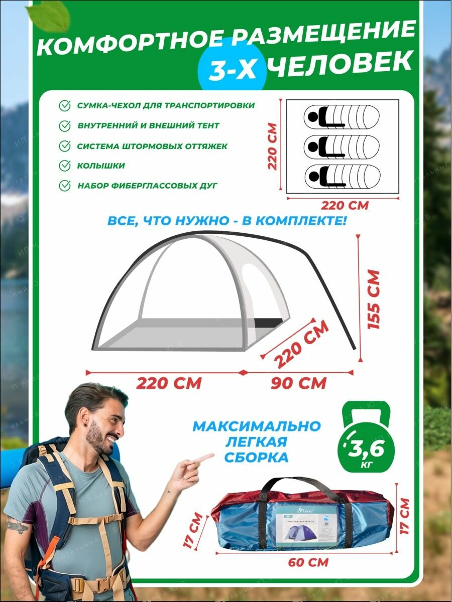 | Водостойкость тента/дна | 3000 / 2000 мм в.ст. |