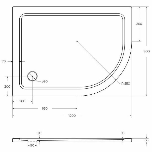 Поддон для душа CEZARES TRAY-M-RH-120/90-550-35-W-L из стеклокомпозита (SMC)