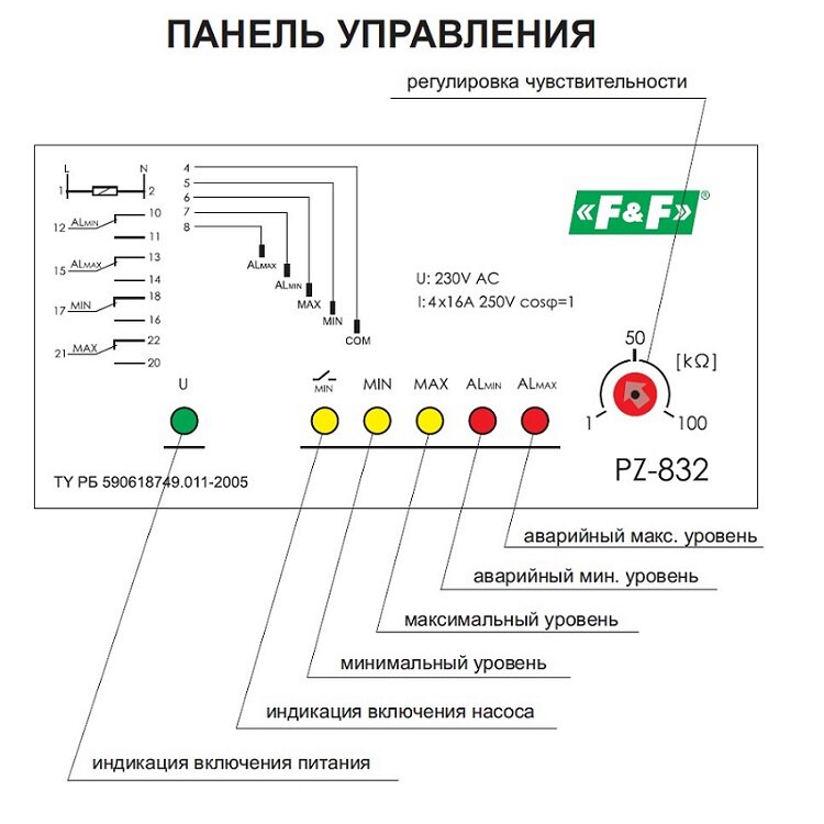 Реле контроля уровня жидкости F&f, Pz-832, четырехуровневый .