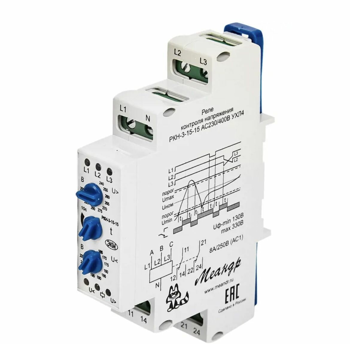Меандр Реле контроля напряжения РКН-3-15-15 Ac230в/ac400b УХЛ4 A8302-16933945 .