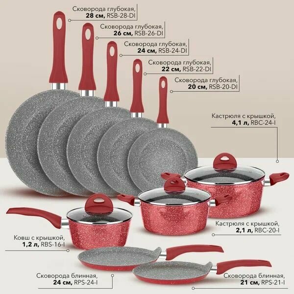 Сковорода антипригарная литая глубокая Moulin Villa Raspberry RSB-20-DI, индукция, 20 см