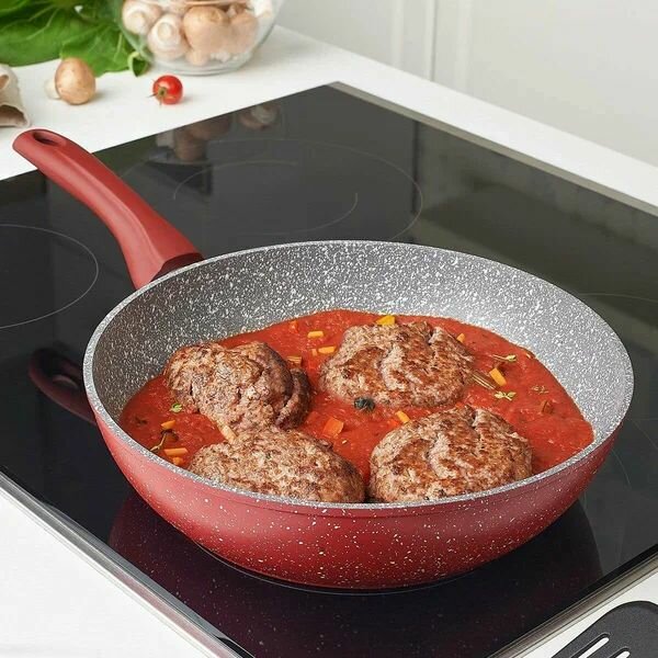 Сковорода глубокая с усиленным антипригарным покрытием и индукцией Moulin Villa Raspberry28 см / литая сковорода для индукционной плиты