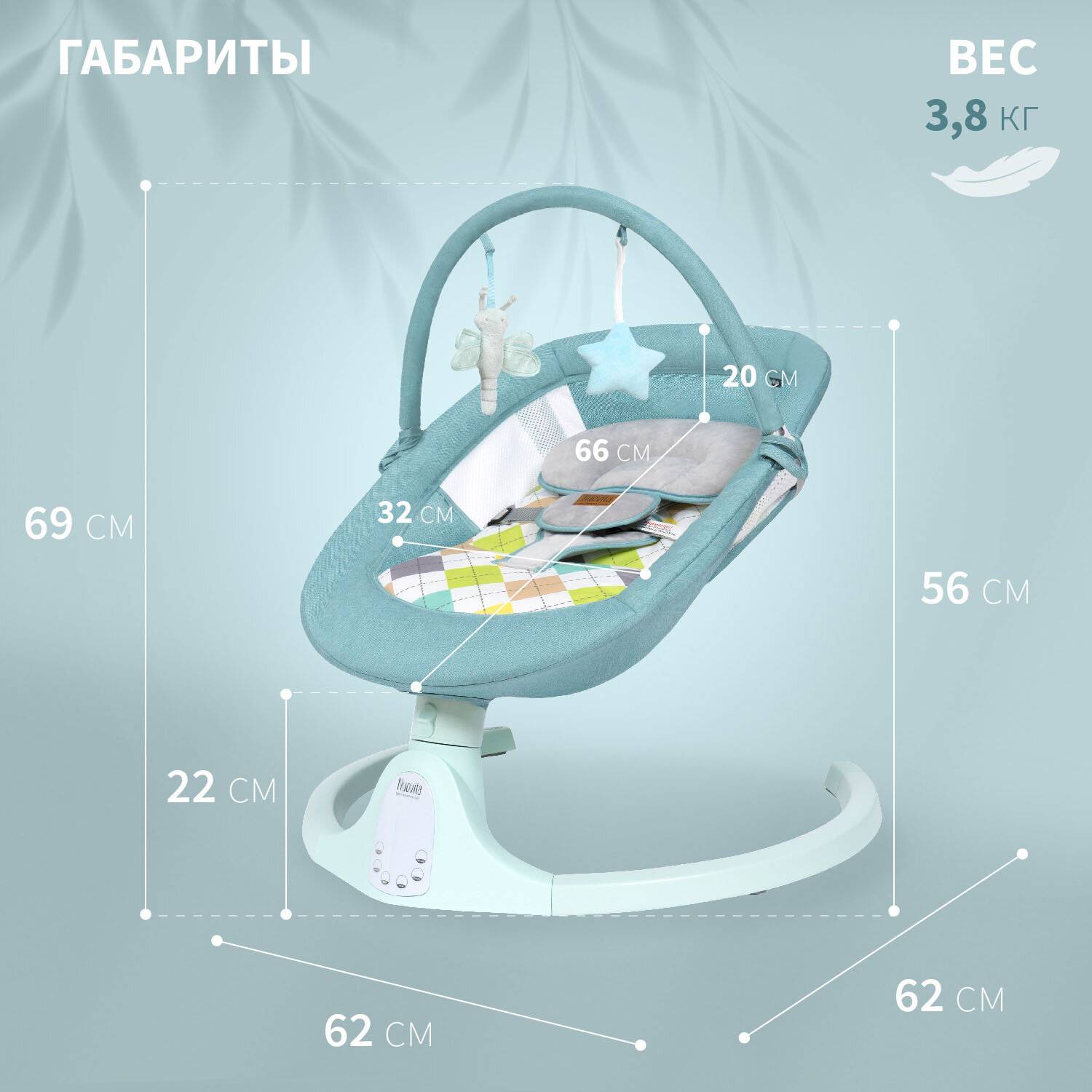 | Комплектация | электрокачель, дополнительная подушка под голову, дуга с 2-мя игрушками, пульт ДУ, адаптер питания |