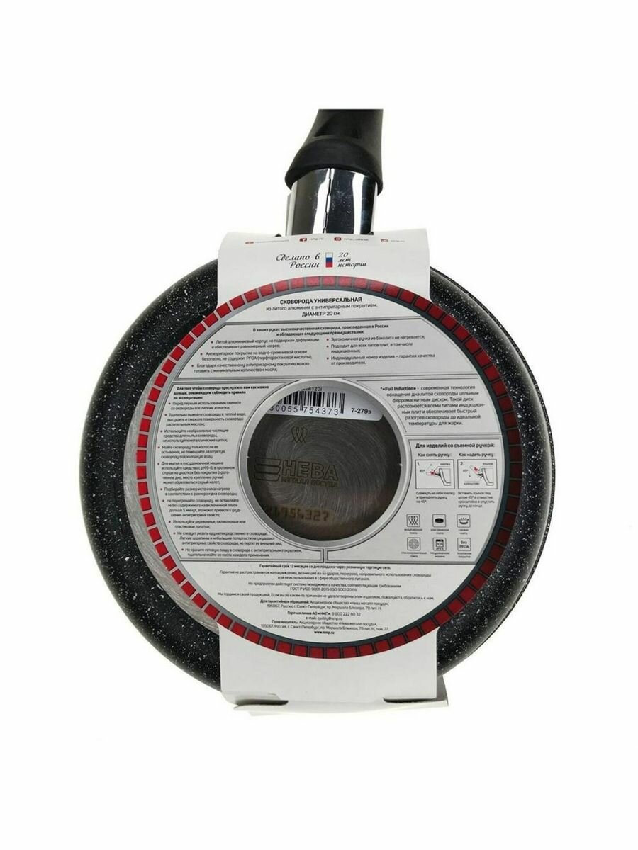 Сковорода Нева Металл Посуда L18120i а/пр литая 20см съемн/руч индукция Гранит 550000517 .