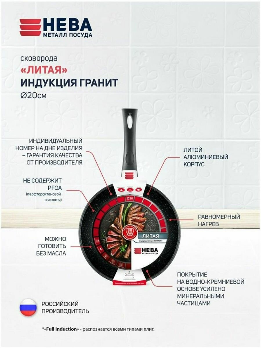 Сковорода Нева Металл Посуда НМП Индукция Гранит 20 см