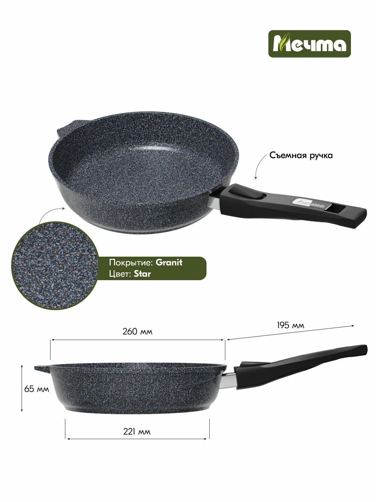 Сковорода Мечта Гранит (018701), 18 см, съемная ручка