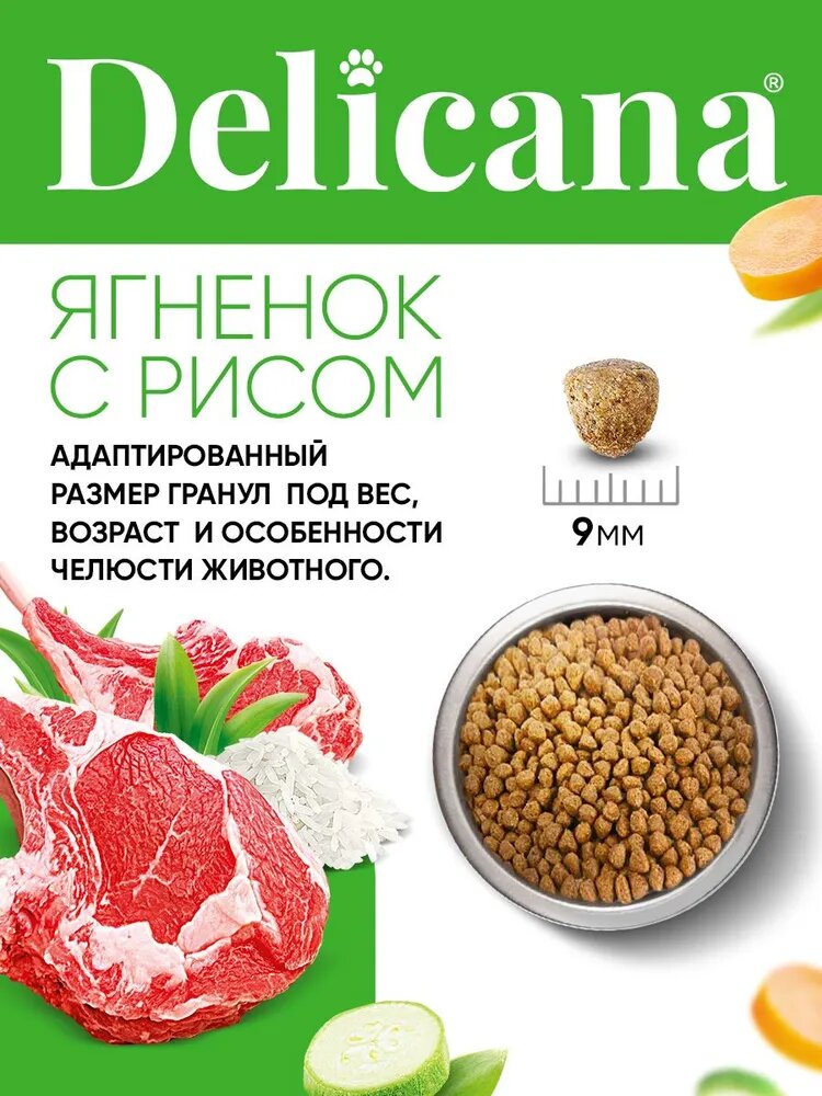 Delicana Сухой корм для собак мелких пород, с ягненком и рисом. 1,5кг