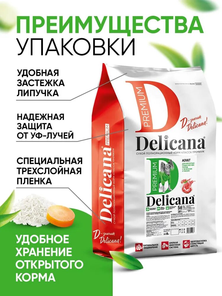 Купить Сухой корм Delicana для собак мелких пород, ягненок с рисом 8 кг
