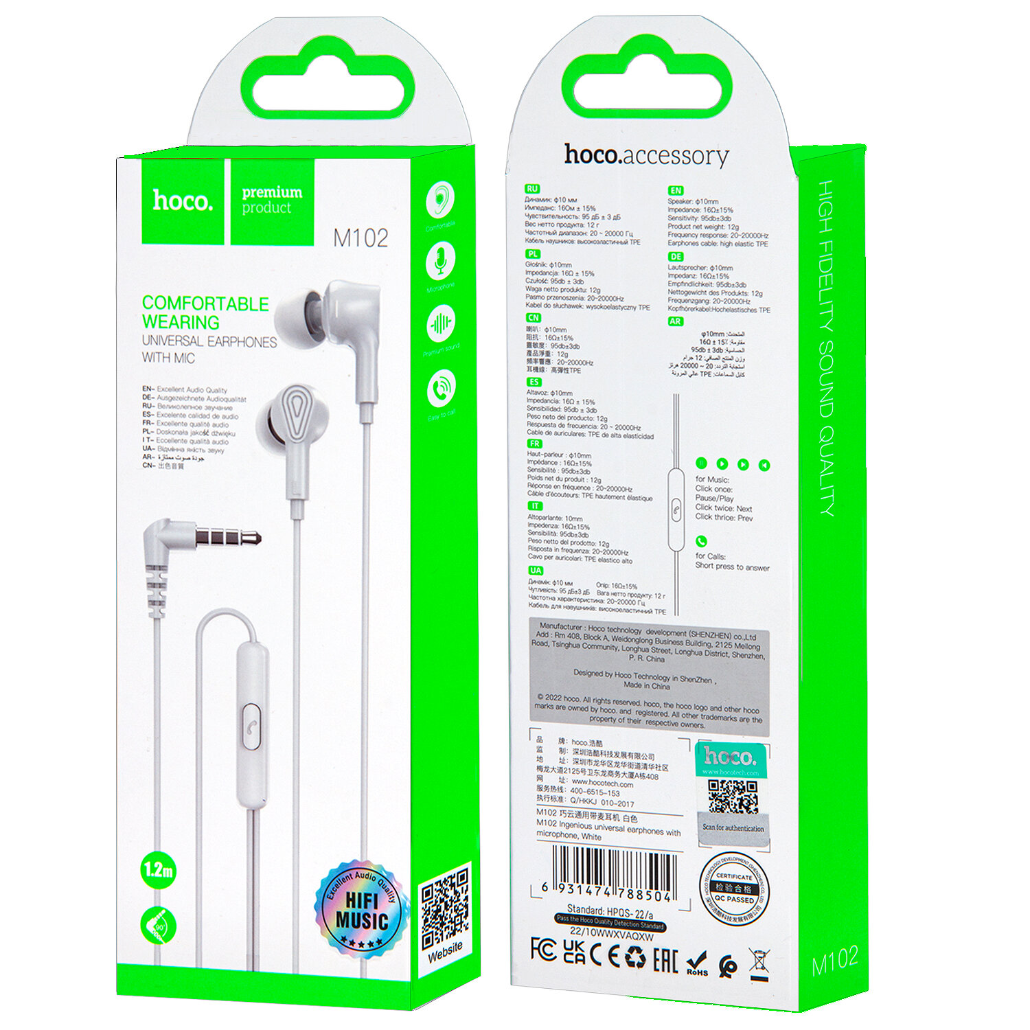 Купить Проводные наушники HOCO M102 Ingenious, Jack 3.5mm, 1.2 м, белый