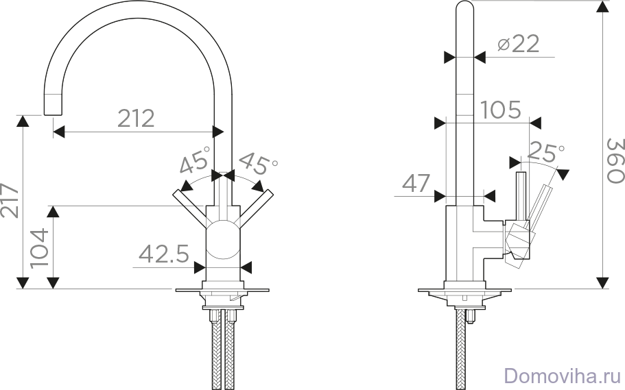 | Длина излива | 212 мм |
