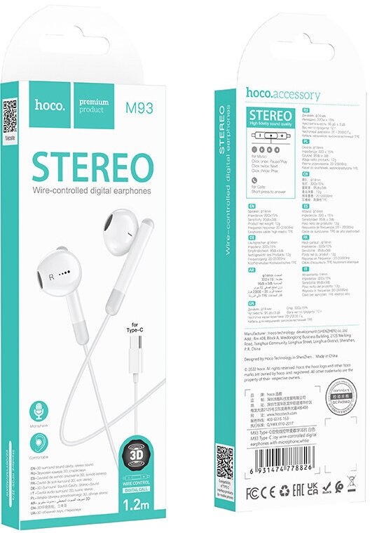 СохранитьНаушники M93, Type-C, Wire control earphones with microphone, HOCO, белый интересное: