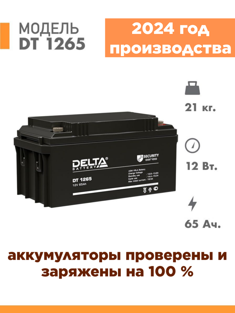 Аккумулятор DELTA DT-1265 (12В, 65Ач / 12V, 65Ah) Для слаботочных систем интересное: