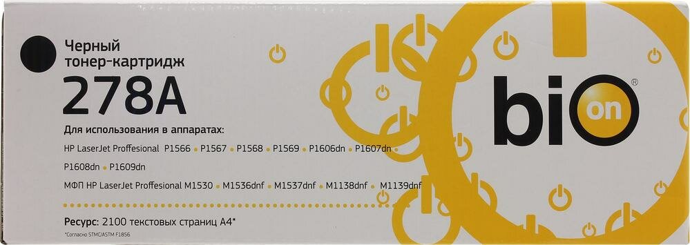 Bion Картридж BCR-CE278A для HP laser Pro P1560/1566/1600/1606 (2100 стр.), Черный