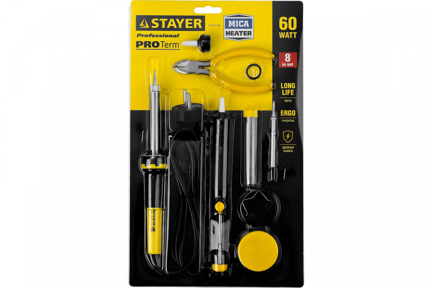 STAYER PROTerm 60Вт конус, в наборе: припой + подставка, 2К рукоятка, Электропаяльник (55300-60)