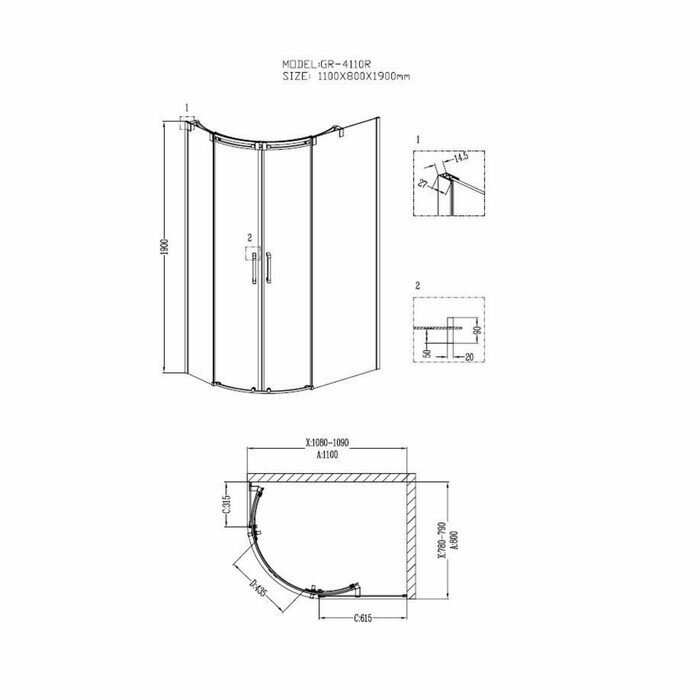Душевое ограждение GROSSMAN GR-4110R Galaxy 110*80*191