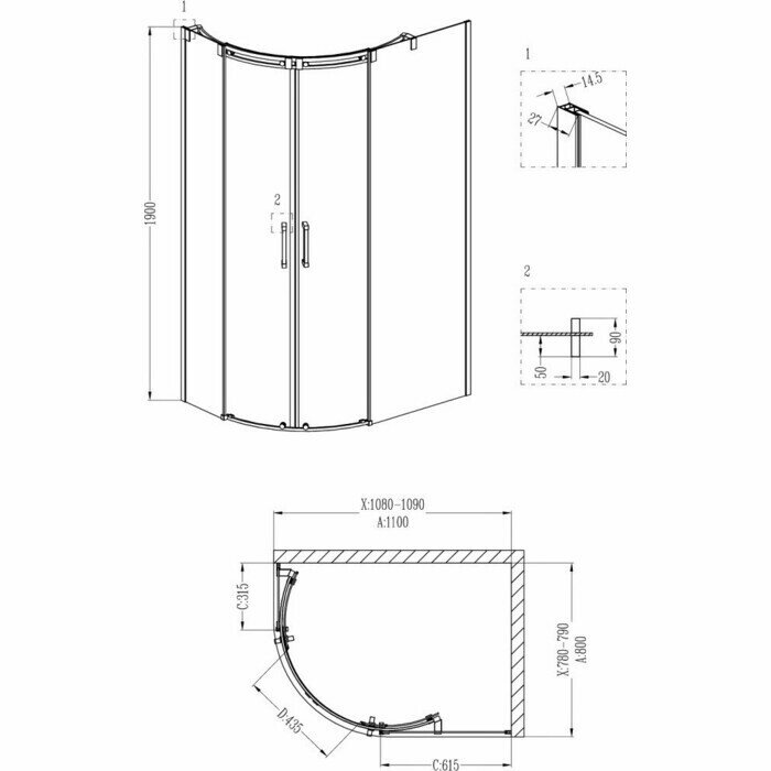Душевое ограждение Grossman GR-4110R Galaxy 110*80*190 двери раздвижные