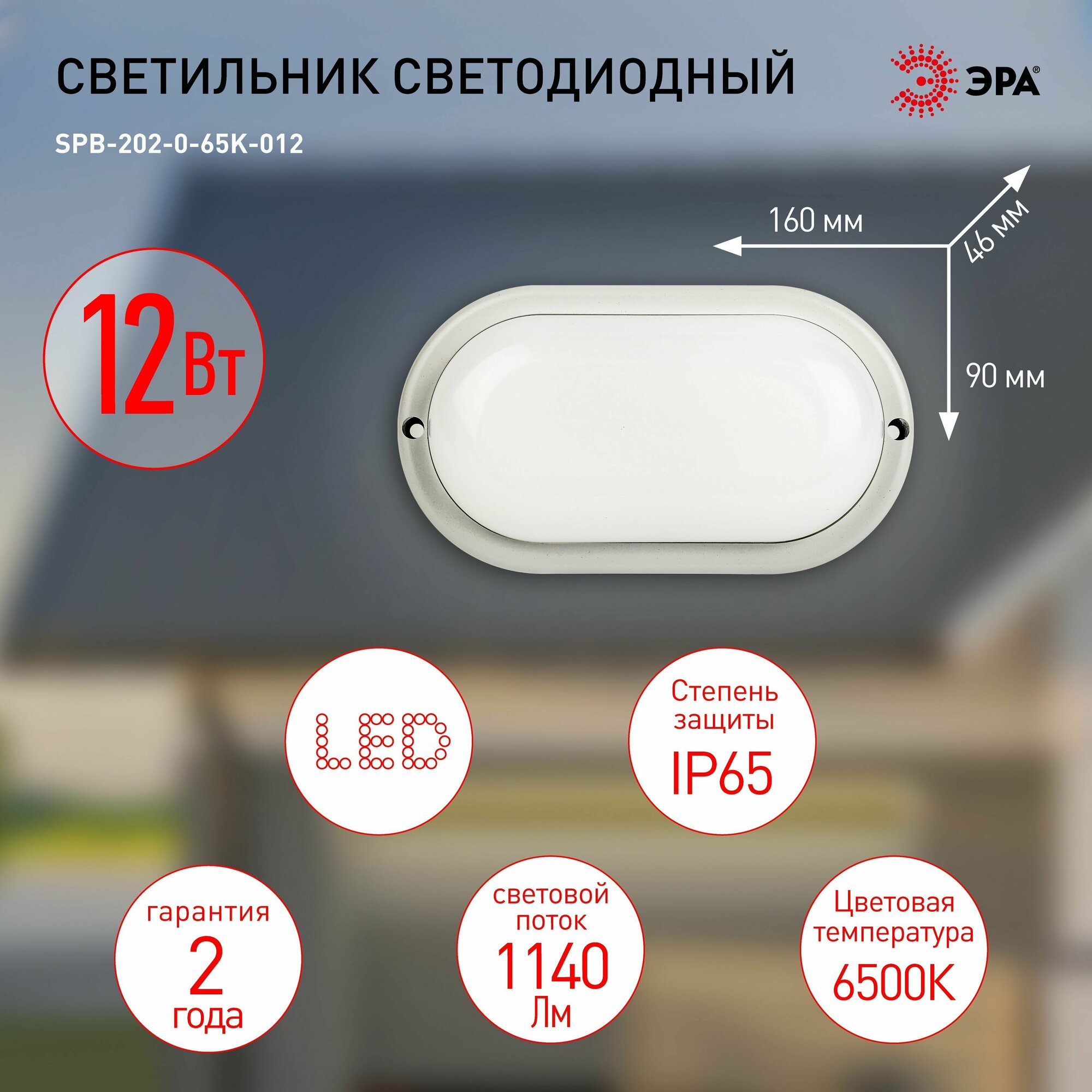 Купить Светильник ЖКХ светодиодный ЭРА SPB-202-0-65K-012 IP65 12Вт 1140Лм 6500К 200x98 овал арт. Б0047622 (1 шт.)