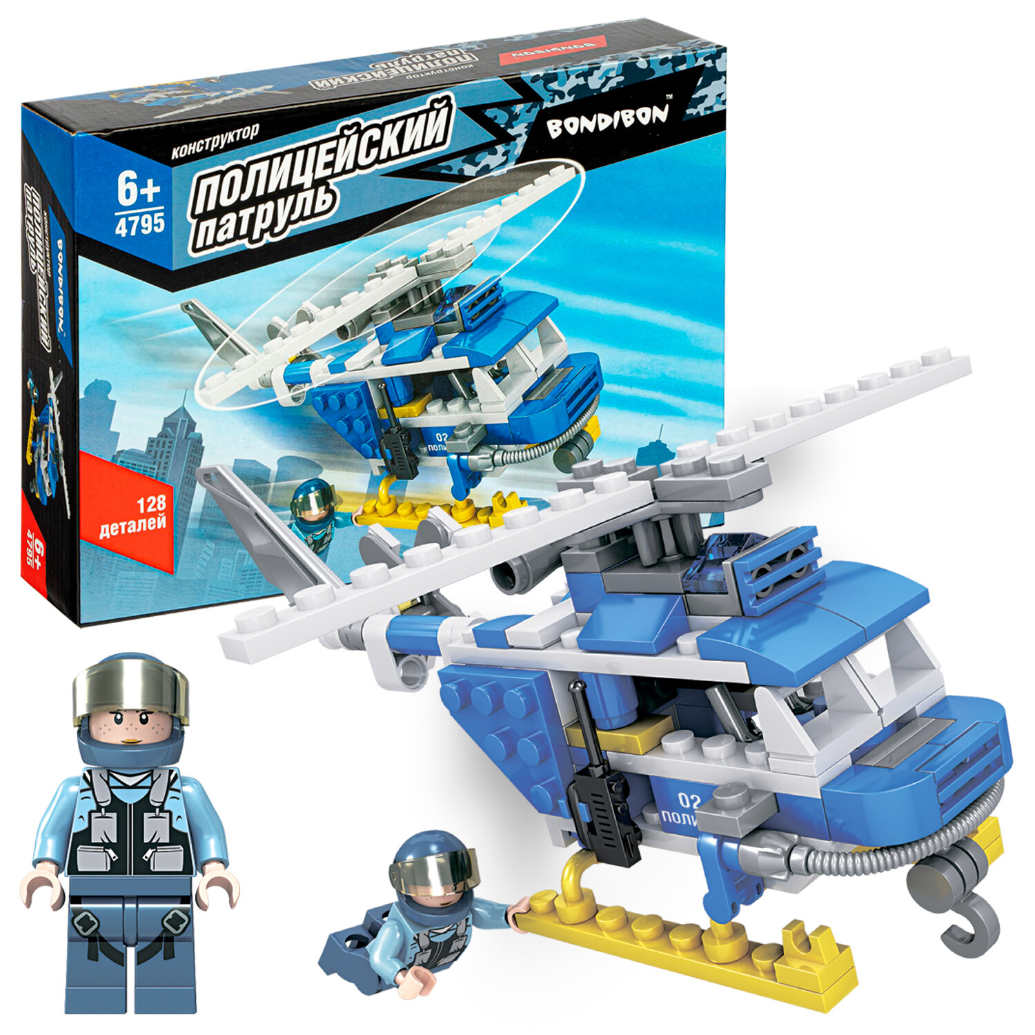 Конструктор Bondibon, Полицейский Патруль, Вертолет, 128 дет., BOX ВВ4795