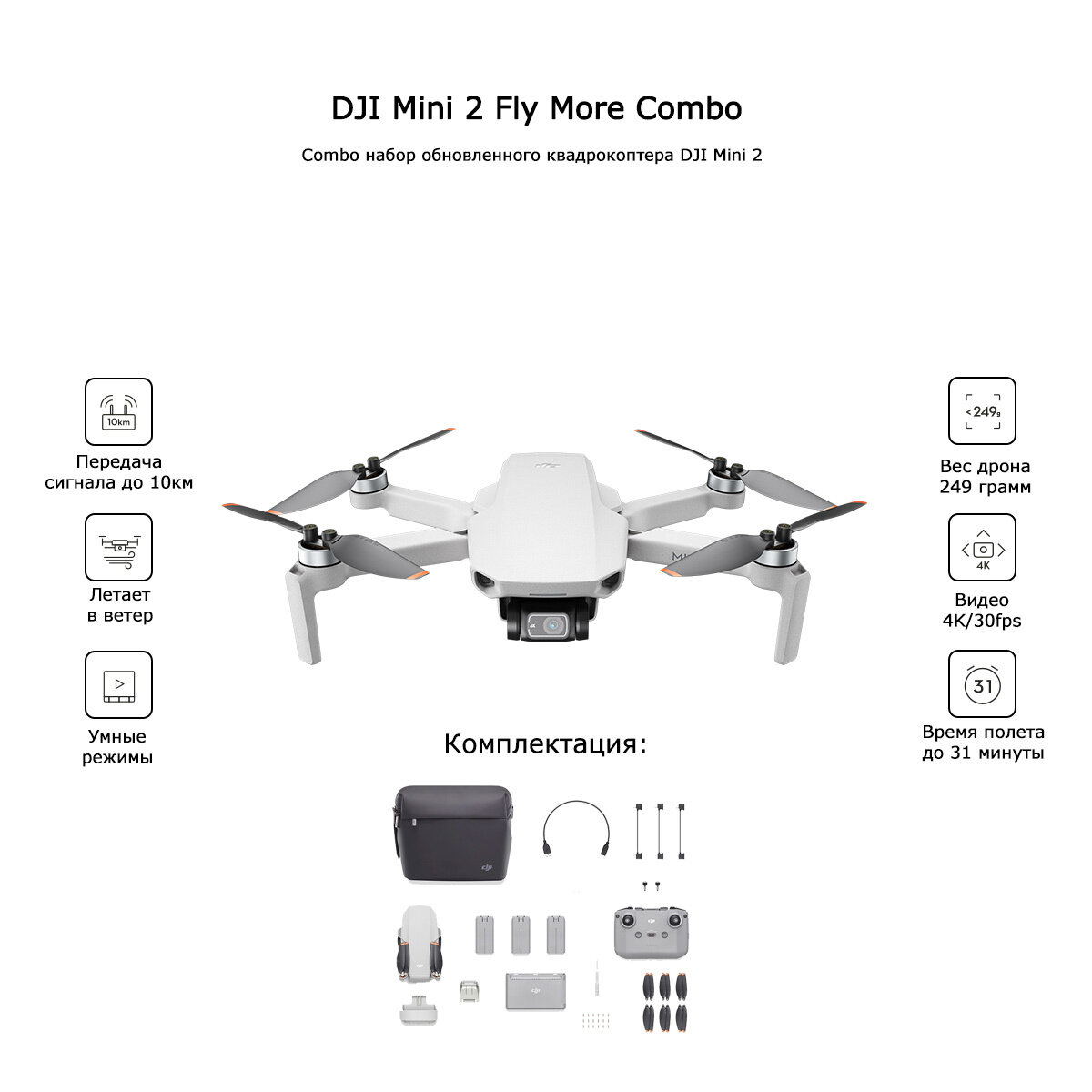 6941565905178, Квадрокоптер DJI Mini 2 Fly More Combo интересное: