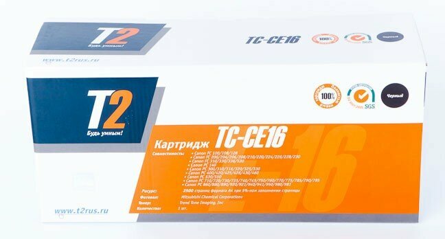 T2 Расходные материалы E-16 Картридж TC-CE16 для FC220 230 290, черный