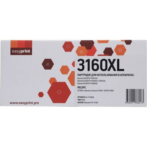 Купить Лазерный картридж EasyPrint LK-3160XL (TK-3160) для принтеров Kyocera P3045dn/P3050dn/P3055dn/P3060dn, с чипом, черный