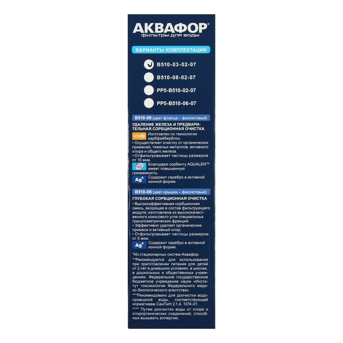 | Дополнительная информация | в комплекте три модуля: предварительная сорбционная очистка питьевой воды - В510-03, глубокая сорбционная доочистка питьевой воды - В510-02, финишная сорбционная очистка и кондиционирование питьевой воды - В510-07 |