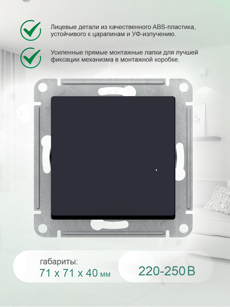 Schneider Electric AtlasDesign Выключатель одноклавишный Карбон сх.1, 10АХ, в сборе (комплект 2шт)