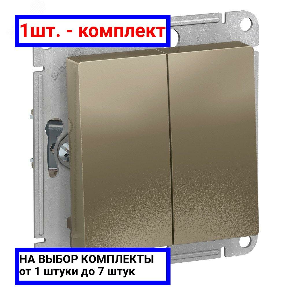 Переключатель двухклавишный встраиваемый Schneider Electric Atlasdesign, 10 A, шампань