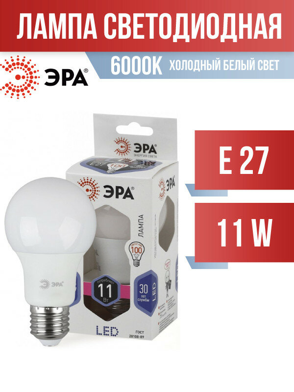 (6 шт.) Светодиодная лампочка ЭРА A60 11Вт 170-265В 6000K E27