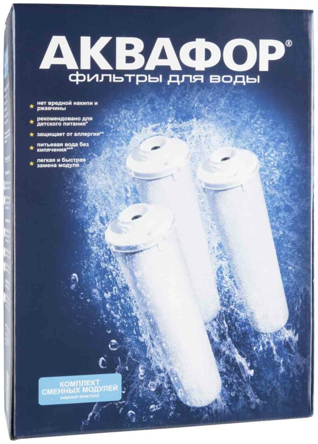 | Дополнительная информация | для фильтра Кристалл; в комплекте три модуля: K3 - предварительная очистка; K2 - глубокая фильтрация; K7 - финишная очистка; возможны разные варианты дизайна упаковки товара |