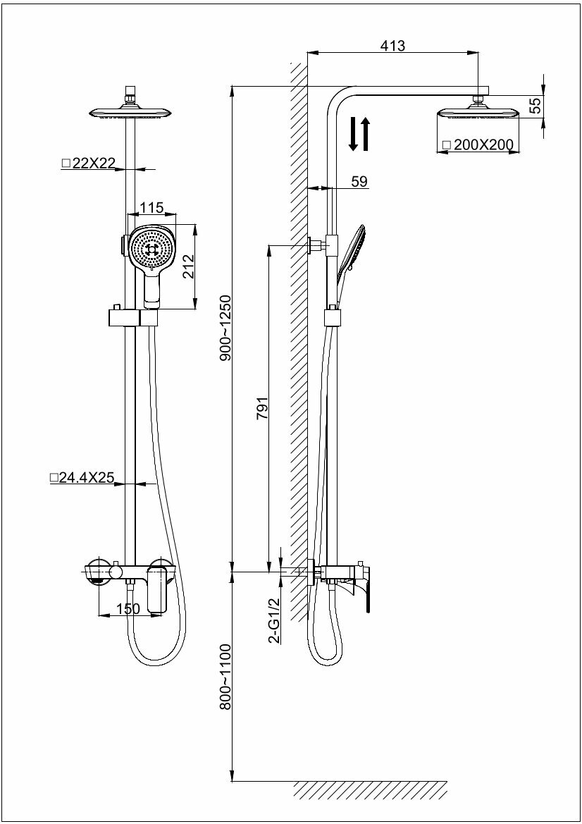 | Форма верхнего душа | квадратная |