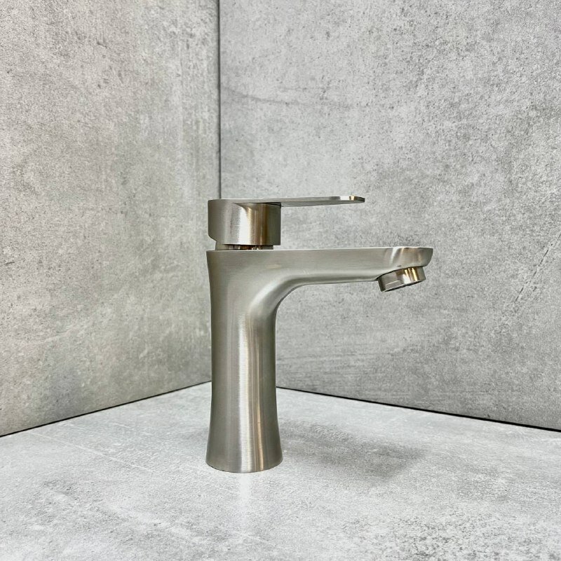 Haiba Смеситель для умывальника (нерж.сталь) монолит, керам.картридж 35 мм, гайка, сталь HB10802