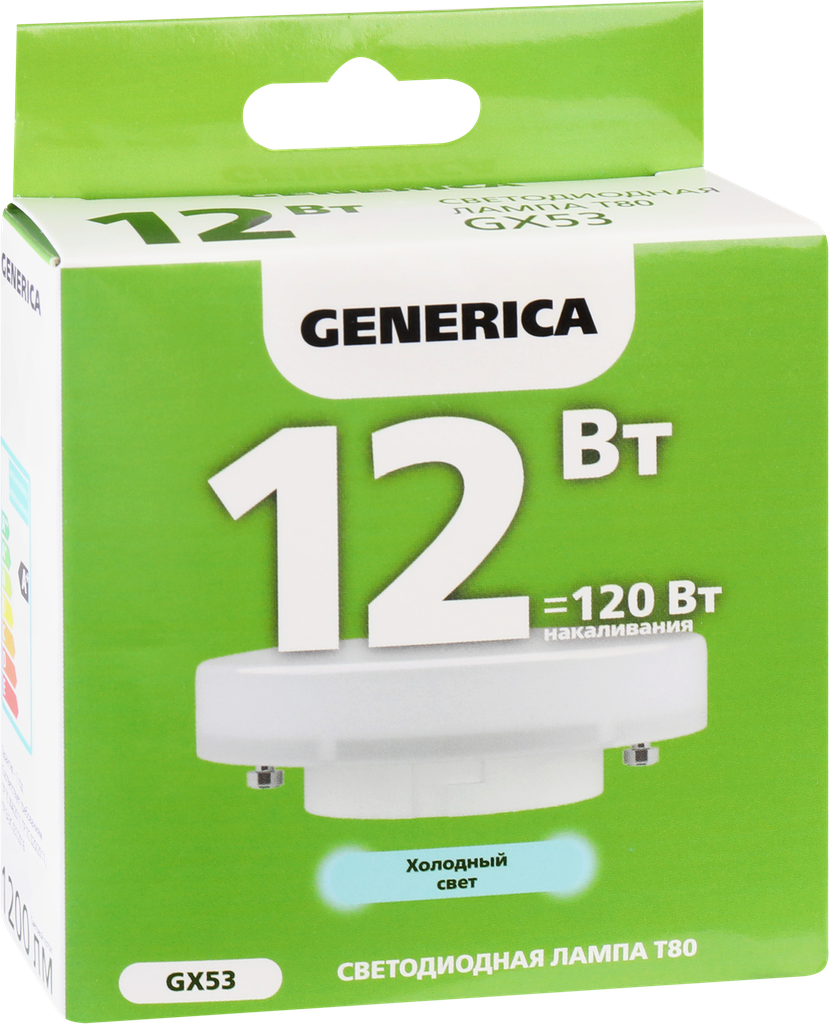 Лампочка светодиодная GENERICA 12Вт=120Вт 6500К холодный свет GX53 T80 таблетка (комплект из 5 шт.)