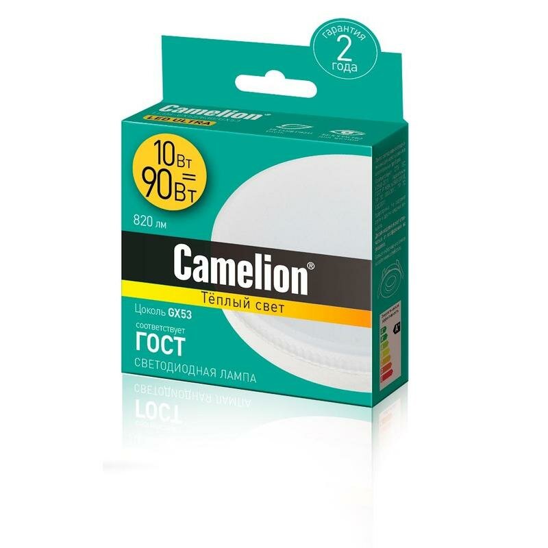 Купить Лампа светодиодная GX53, 10 Вт, 90 Вт, таблетка, 3000 К, свет теплый белый, Camelion