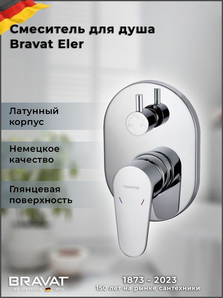 Смеситель для душа BRAVAT Eler FB848238CP-3-RUS, хром [FB848238CP-3-RUS]