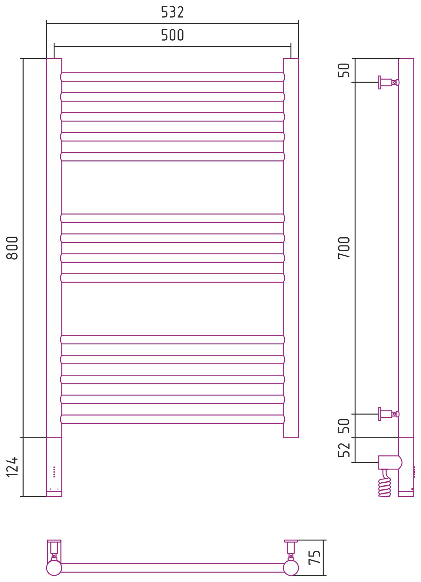 Электрический полотенцесушитель Сунержа Богема 3.0 прямая 800x500 лтэн без пoкрытия, 00-5804-8050