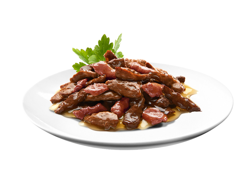 | Состав | Мясо и субпродукты (в том числе говядина и кролик),злаки и продукты их переработки, аминокислоты (в том числе таурин), минеральные вещества,витамины, сахара, загустители, натуральный карамельный краситель. |