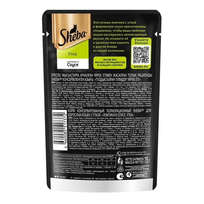 Влажный корм Sheba для кошек, утка, пауч, 75 г