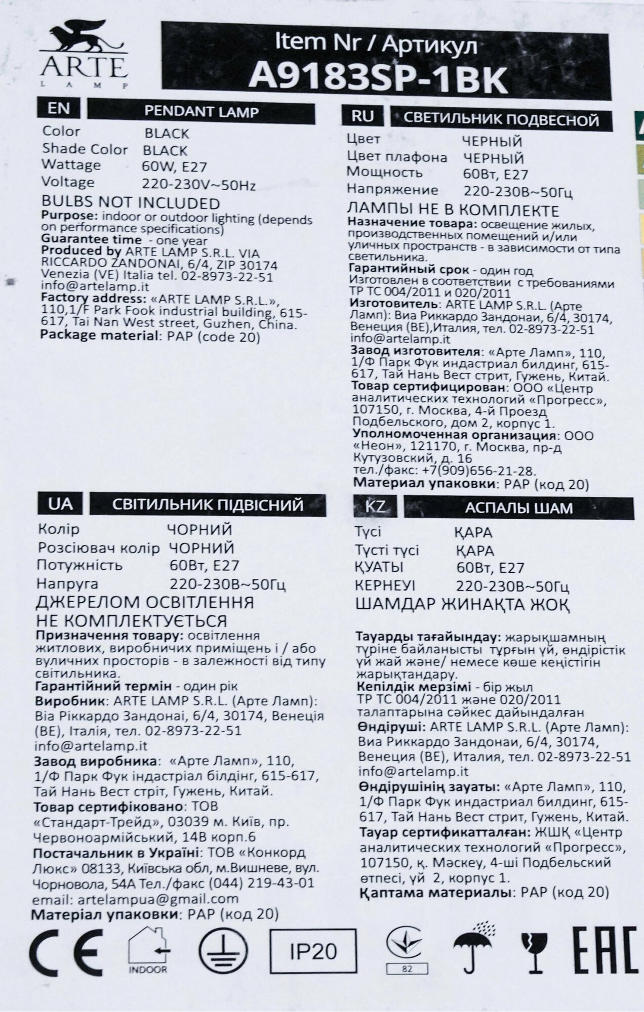 | Производитель | Arte Lamp |