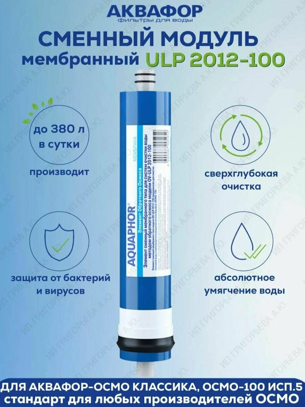 Сменный модуль Аквафор ULP 2012-100 для глубокой очистки воды и удаления солей жёсткости до 15,8 л/час (10SL, Осмо 100 исп. 5,6)