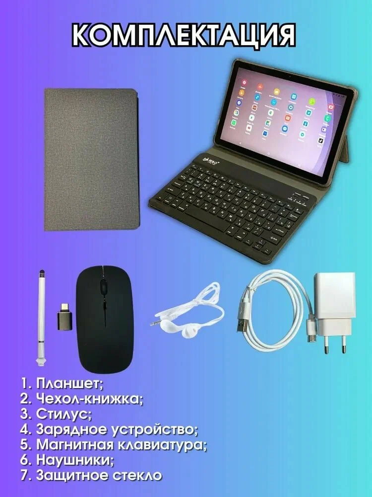 | Комплектация | Клавиатура, мышка, стилус, зарядное устройство, эджектор для сим-карты, спинер, чехол-книжка, защитная пленка, наушники |