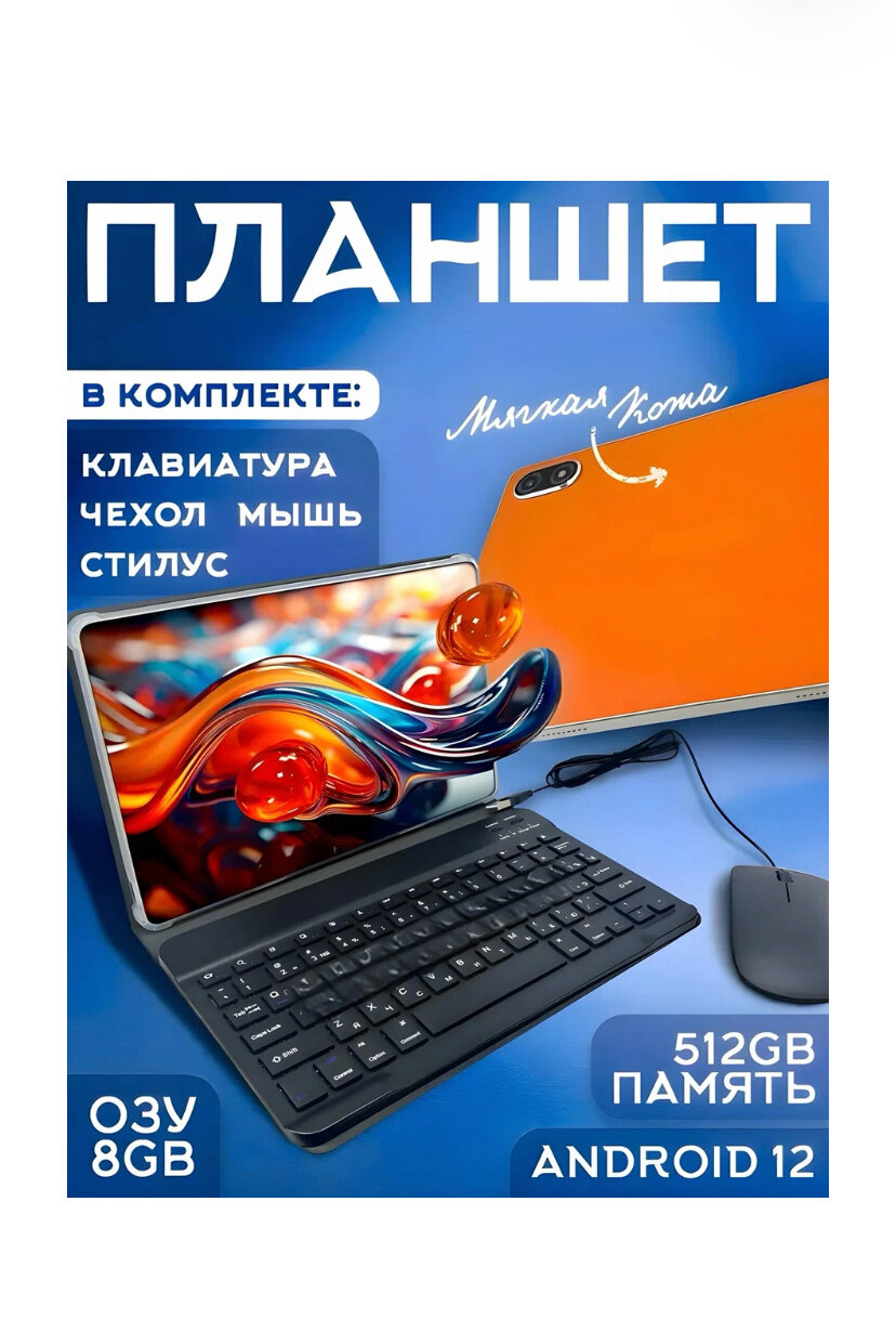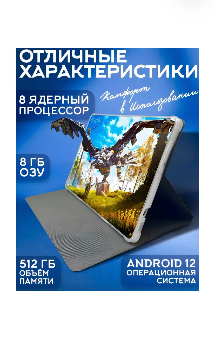 Мощный планшет с чехлом и клавиатурой 8 ГБ/512 ГБ, 10,1 дюйма, Android 12 интересное:
