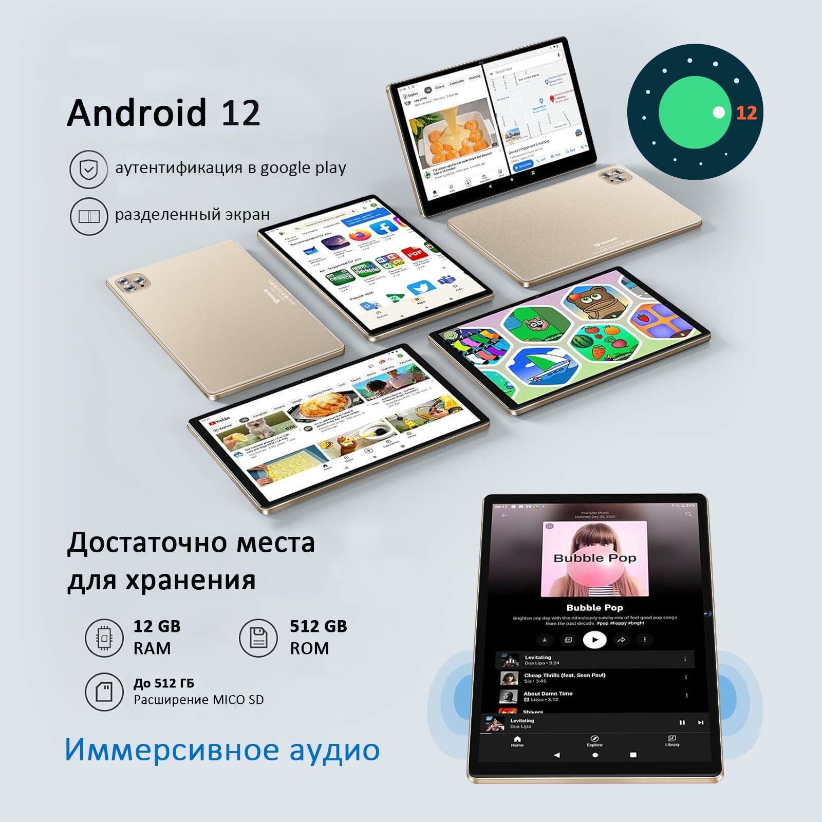 Сохранить10.1" Планшет VANWIN Pad V62(2024), 12/512ГБ, Wi-Fi, Android 12, Золото интересное: