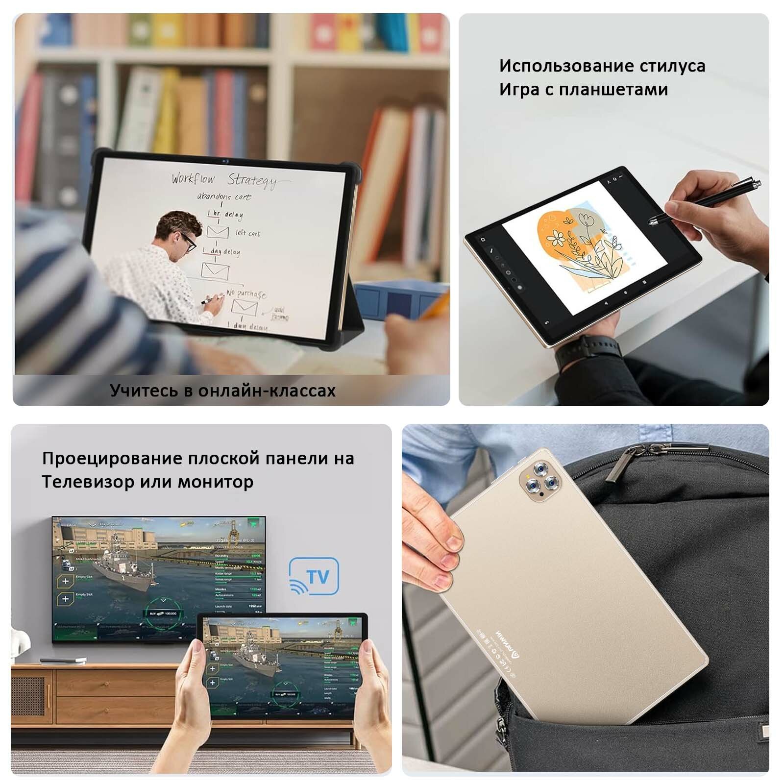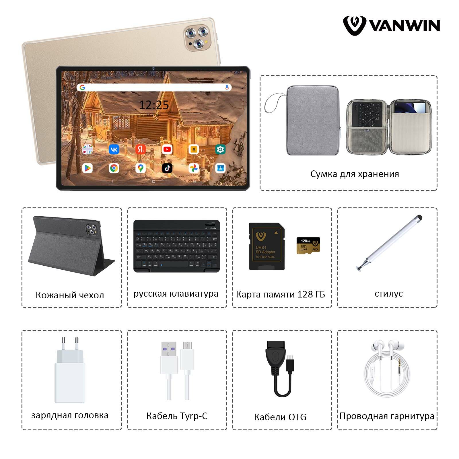 Планшет VANWIN Pad V62(2024), 10.1" 12/512ГБ,Wi-Fi, Android 12, Золото, ,планшет с клавиатурой