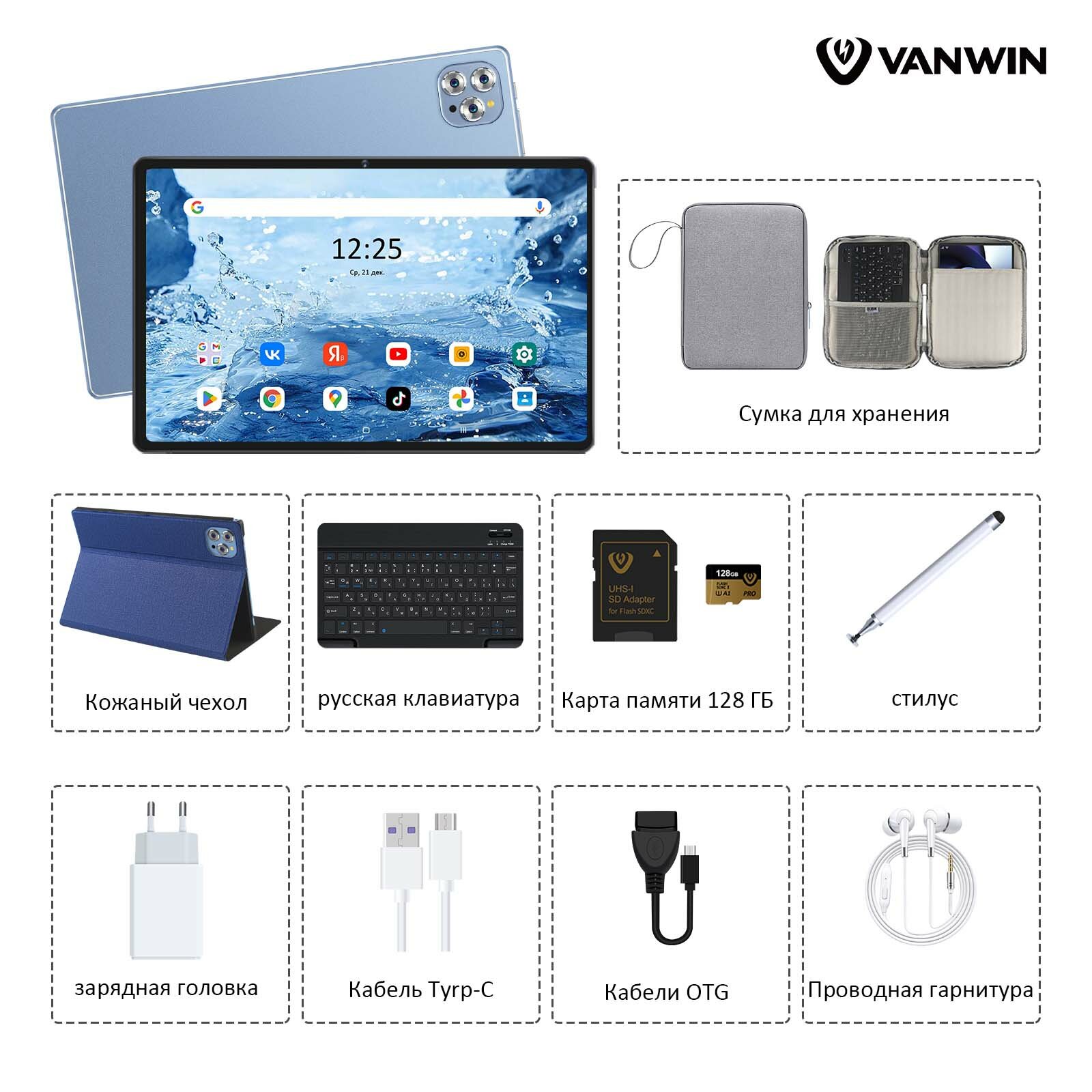 Планшет VANWIN Pad V62(2024), 10.1" 12/512ГБ,Wi-Fi, Android 12, синий,планшет с клавиатурой