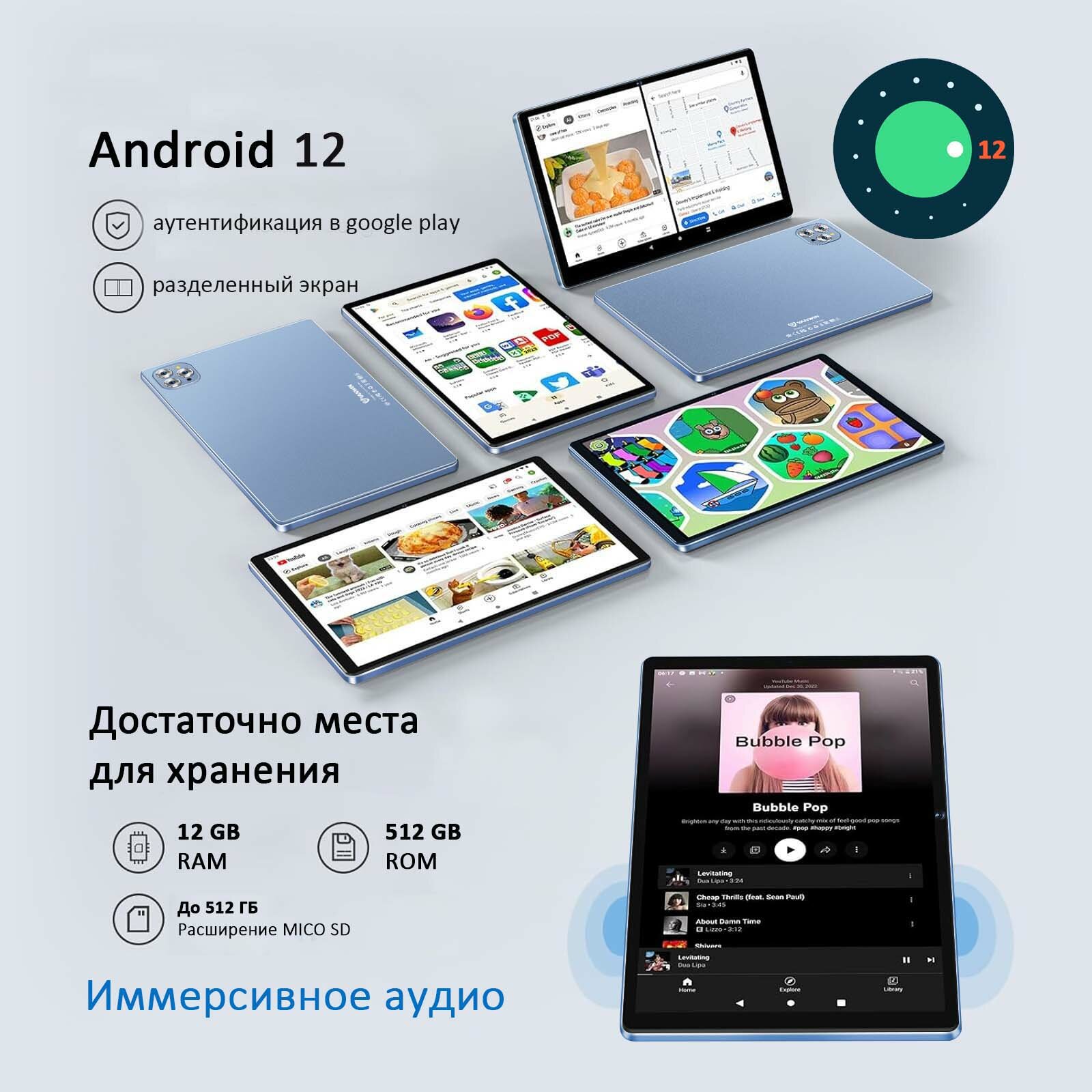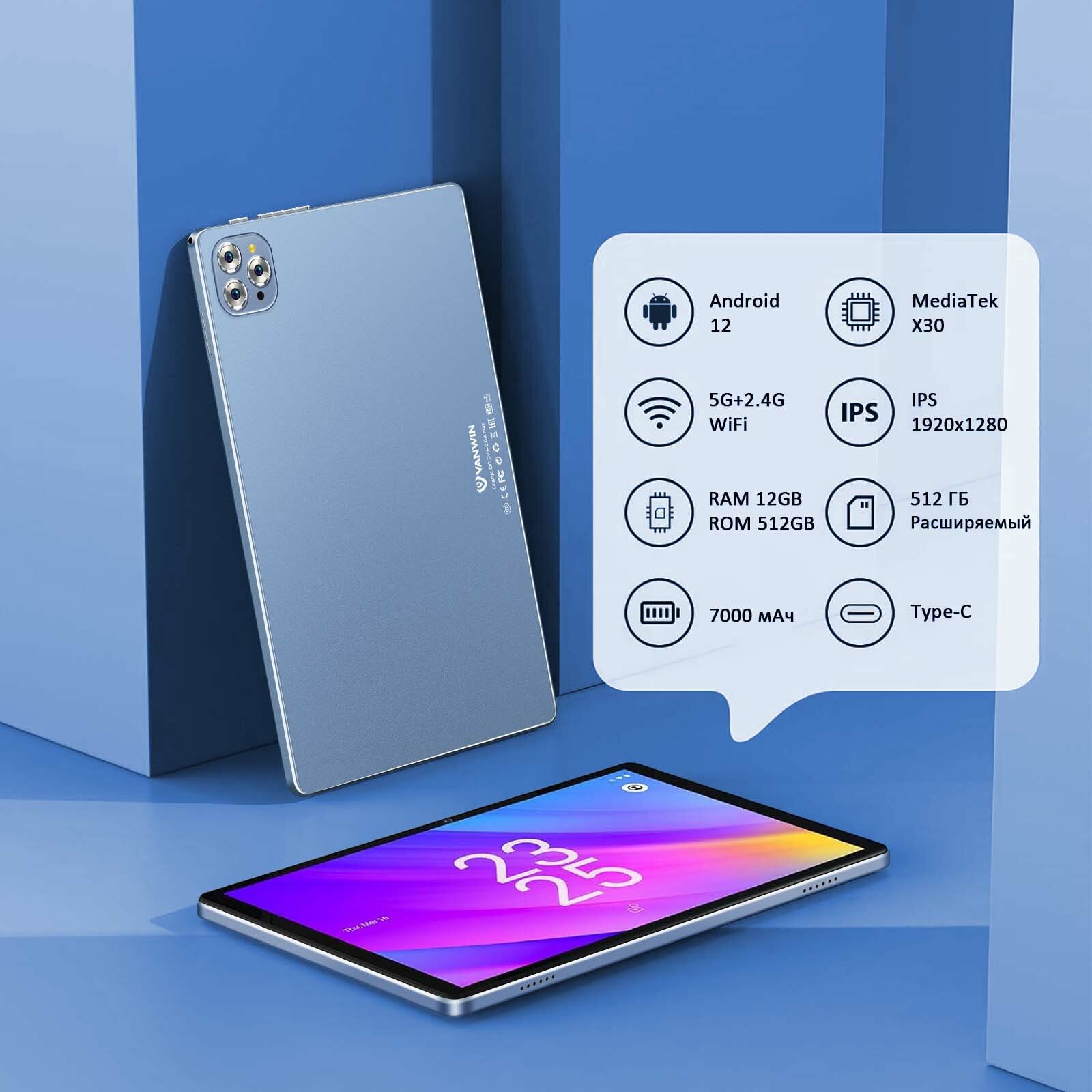 Купить 10.1" Планшет VANWIN Pad V62(2024), 12/512ГБ, Wi-Fi, Android 12, синий