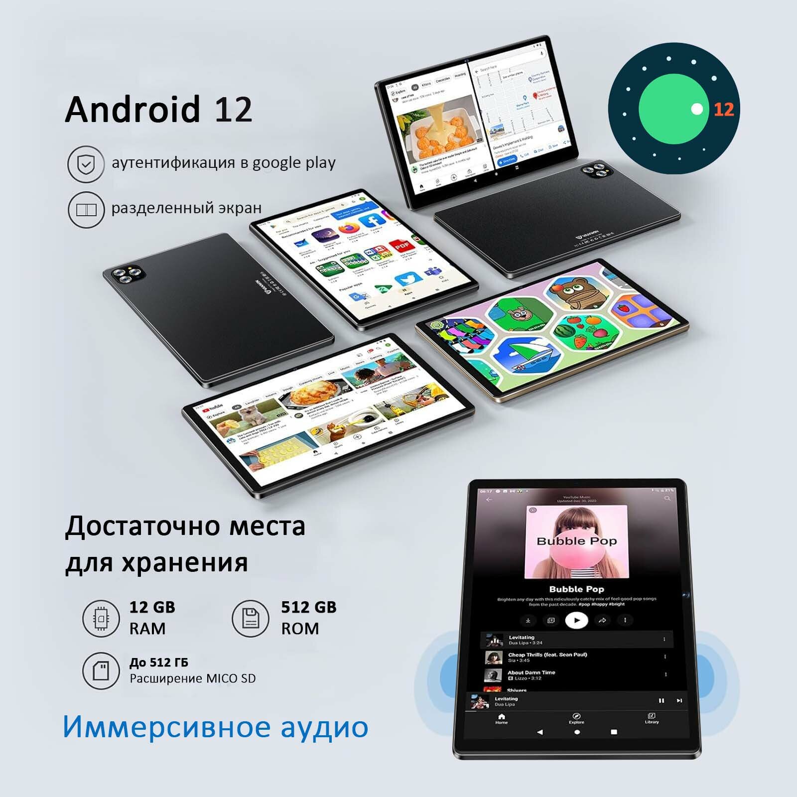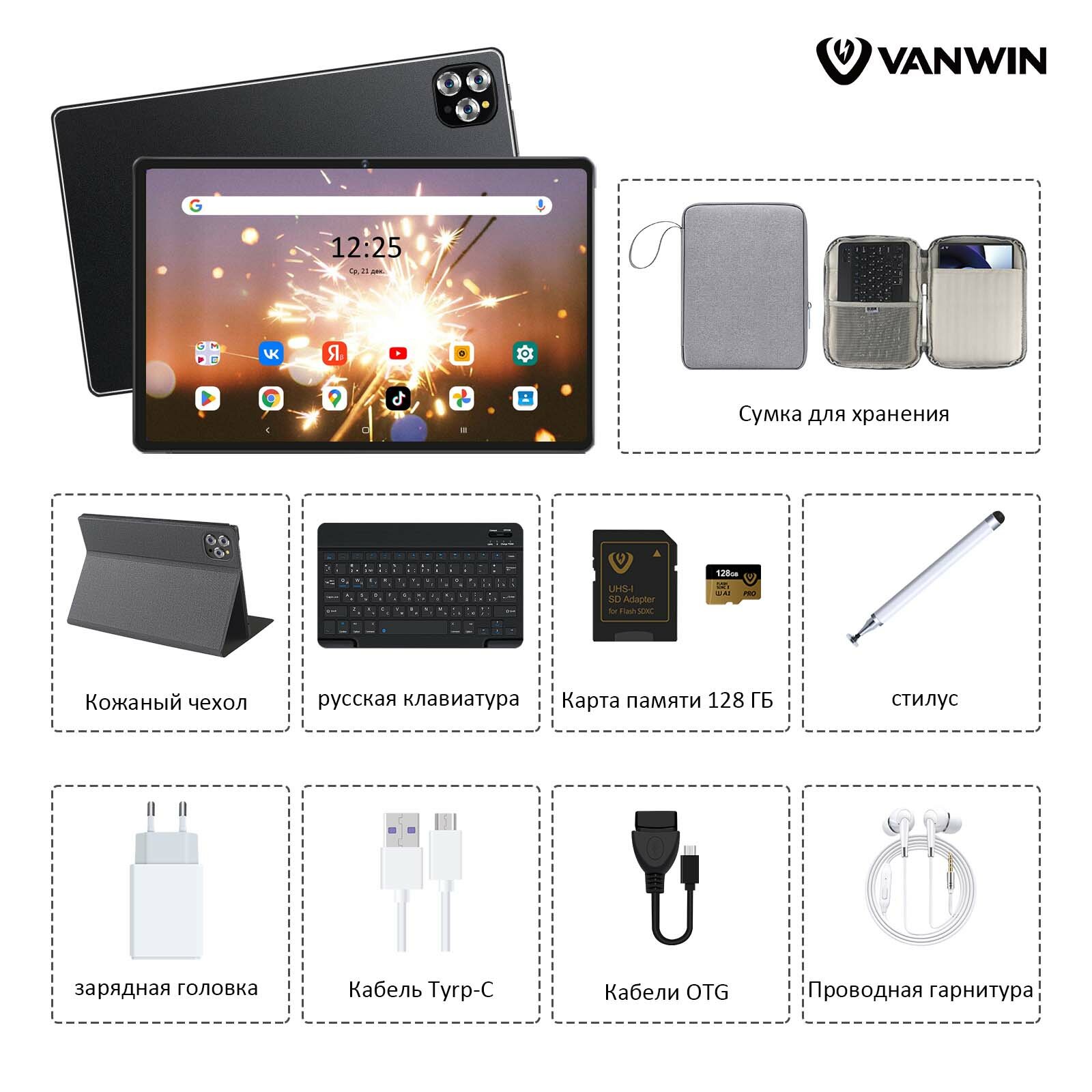 Планшет VANWIN Pad V62(2024), 10.1" 12/512ГБ,Wi-Fi, Android 12, Черный,планшет с клавиатурой