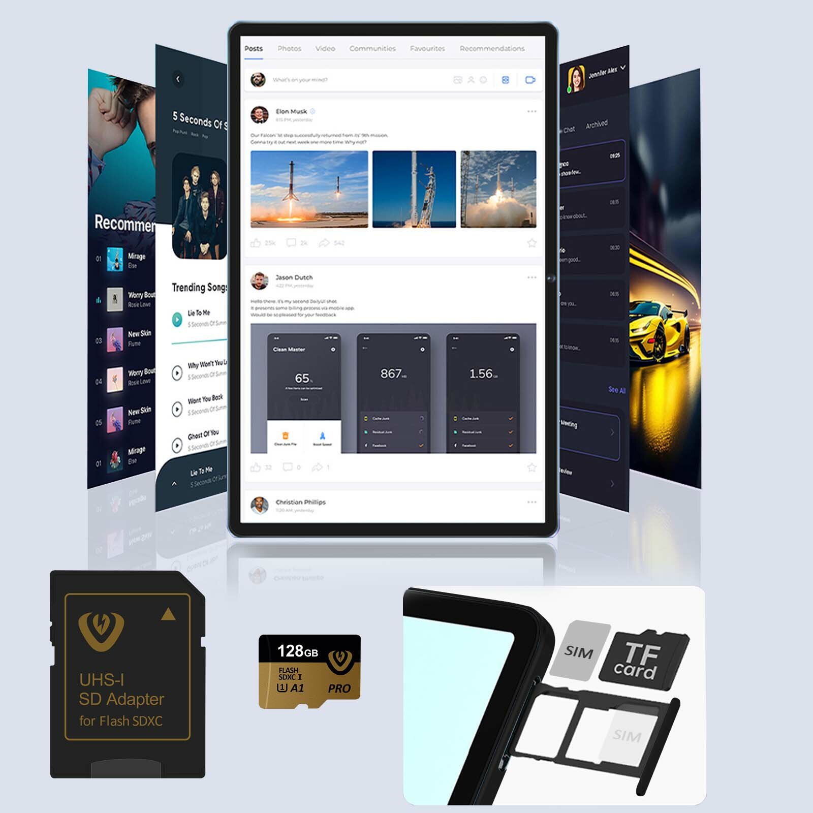 | Комплектация | планшет; зарядное устройство; кабель USB-C; OTG-удлинитель; стилус; проводные наушники; Bluetooth-клавиатуру; чехол для планшета; карту памяти на 128 ГБ; сумку для хранения и переноски планшета; руководство пользователя. |