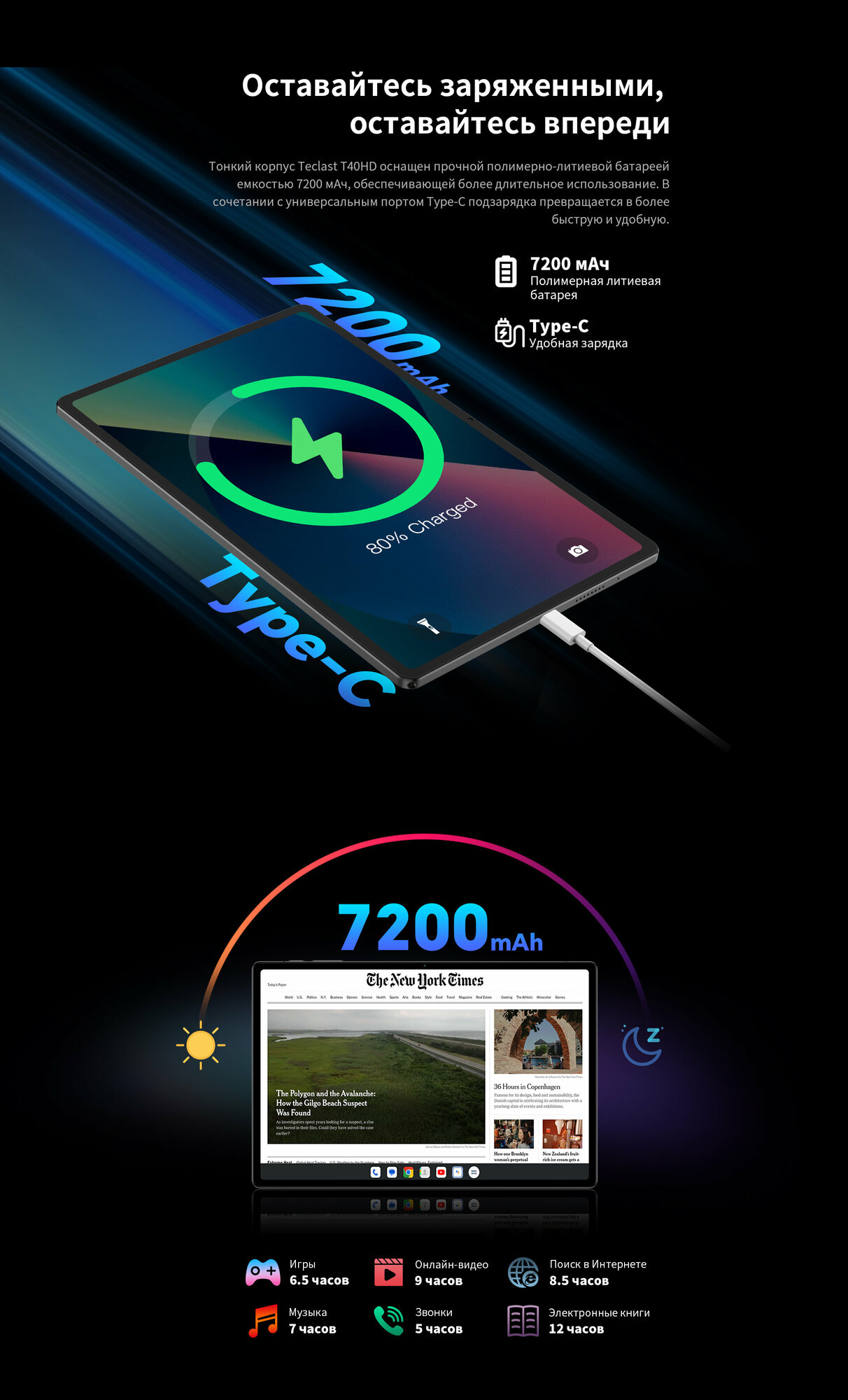 | Емкость аккумулятора | 7200 мАч |
