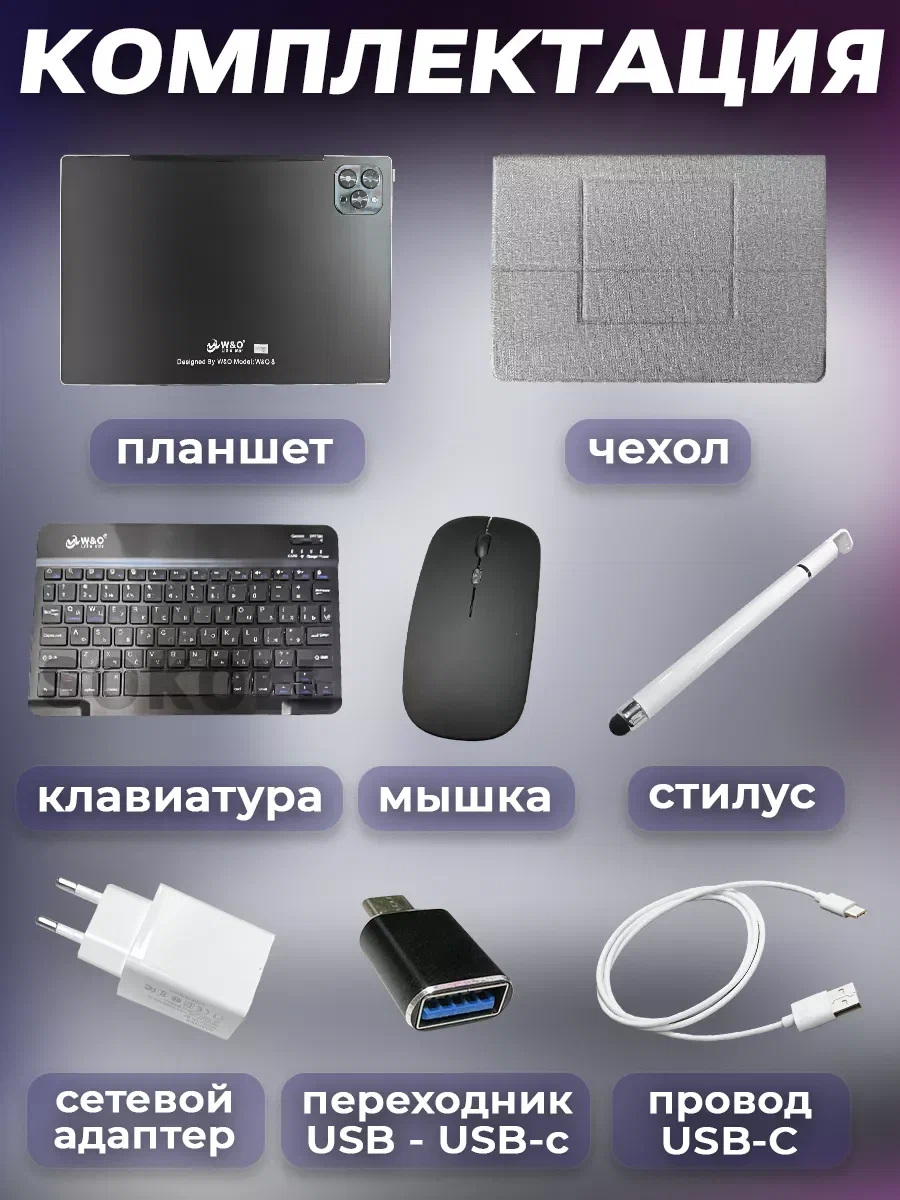 Планшет W&O 8, с клавиатурой, 8/512, Android 12.0, синий интересное: